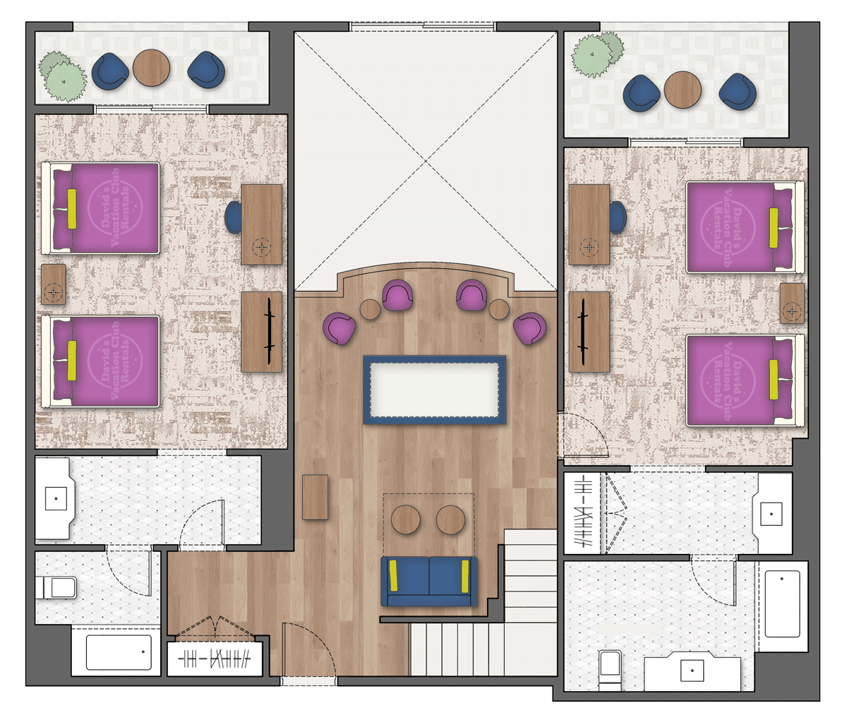 The Villas at Disney's Grand Californian Hotel & Spa offers Vacation Homes that capture the spirit of the Golden State's romantic craftsman era. Discover timeless sophistication, unique decorative arts and warm, inviting interiors in a variety of family-friendly Vacation Homes located within Disneyland® Resort, just footsteps away from true magic and fantasy come-to-life.